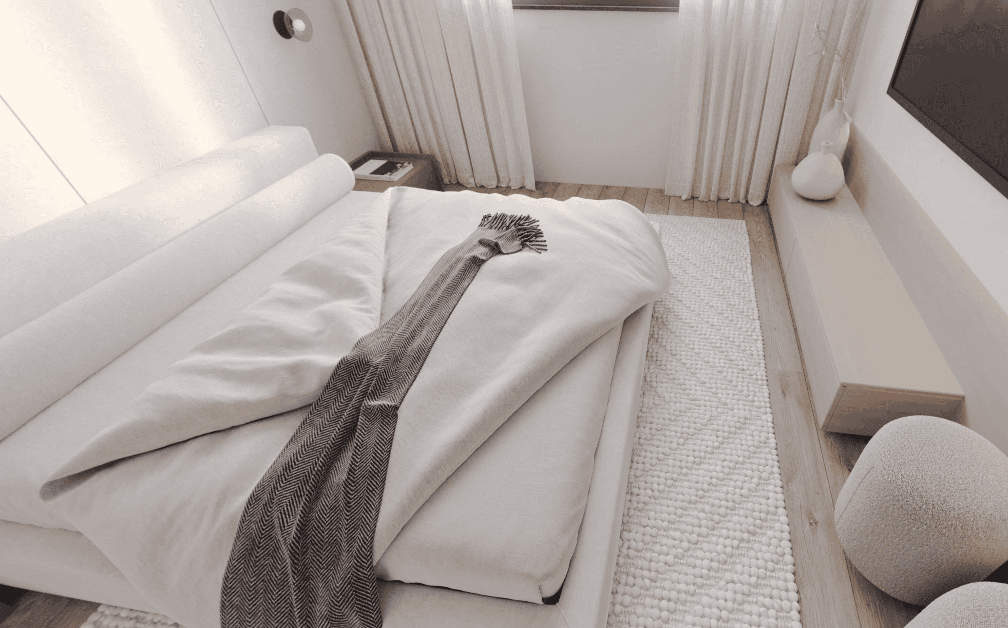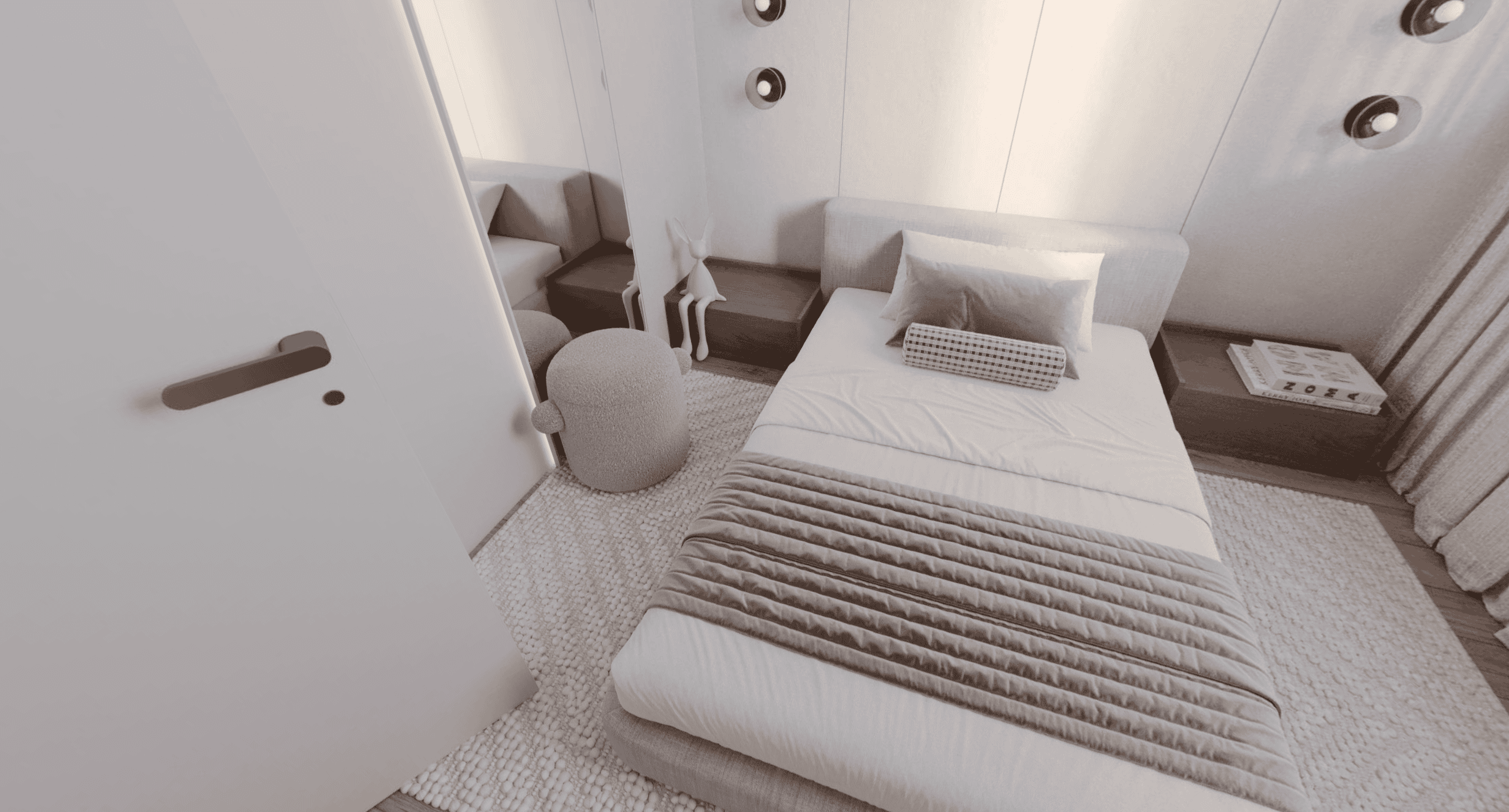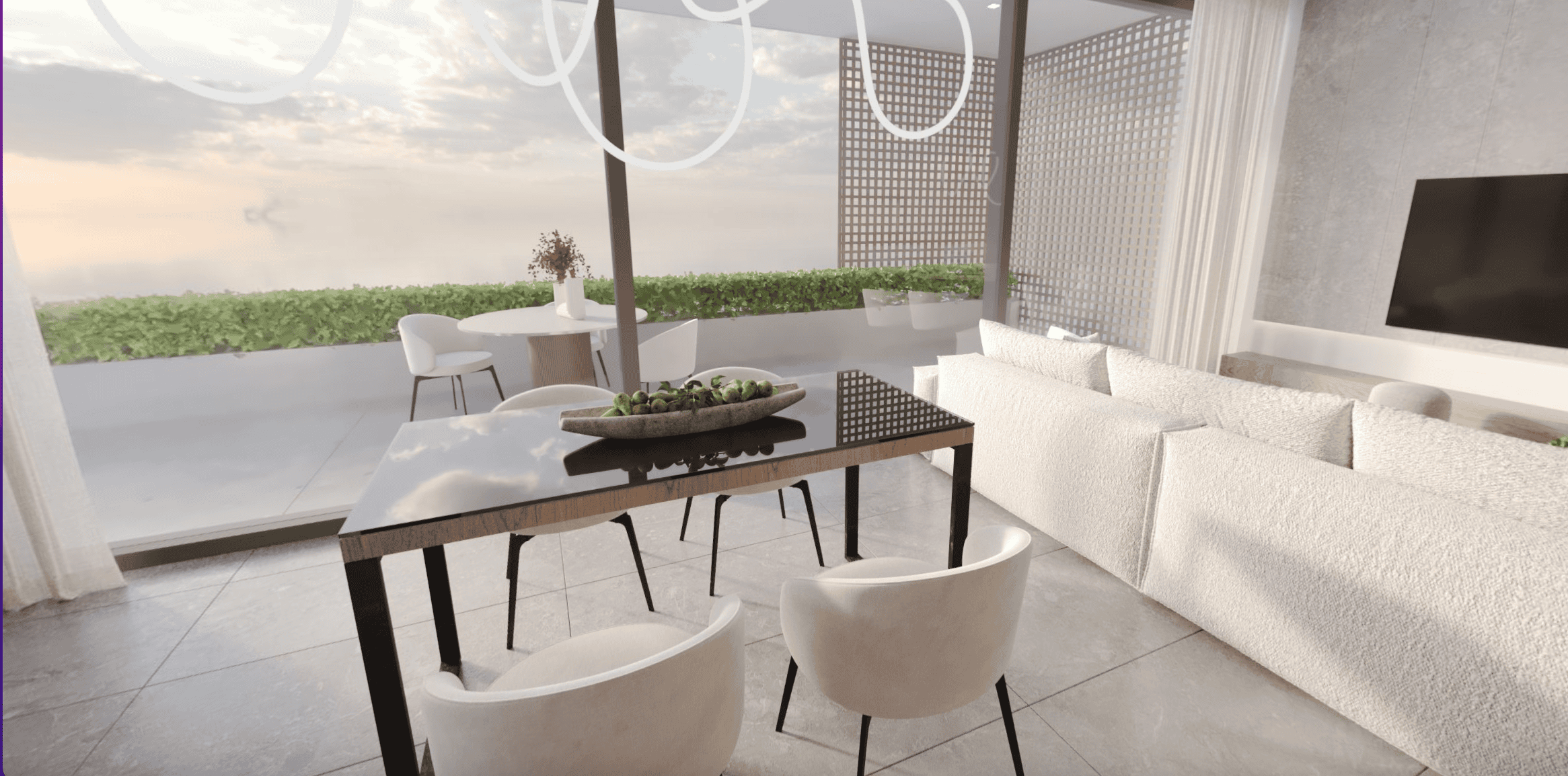 The villa’s geometric design and horizontal lines define a minimalist, modular aesthetic. Large windows open to the garden and pool, ensuring a fluid transition between indoor and outdoor spaces. The house can be configured as a family residence or holiday home, with a focus on simplicity, efficiency, and modern Mediterranean lifestyle.