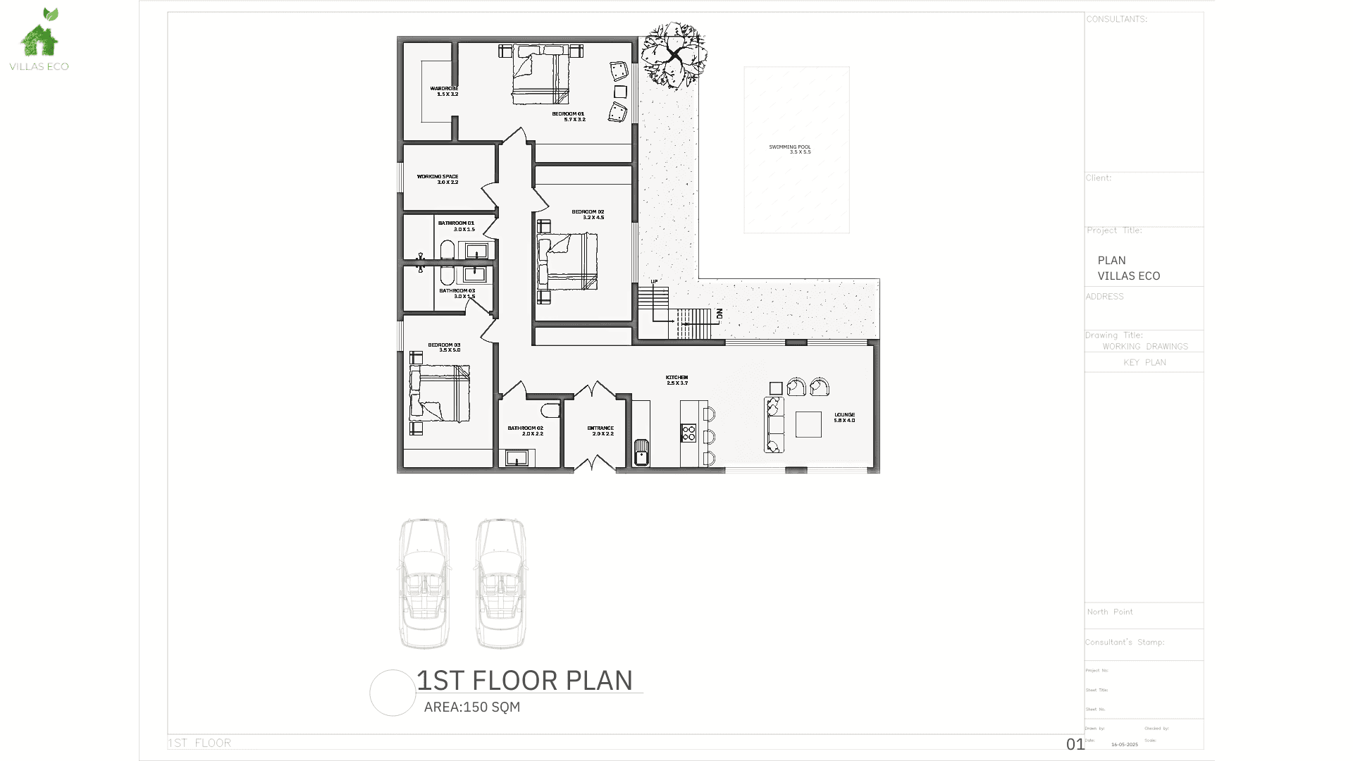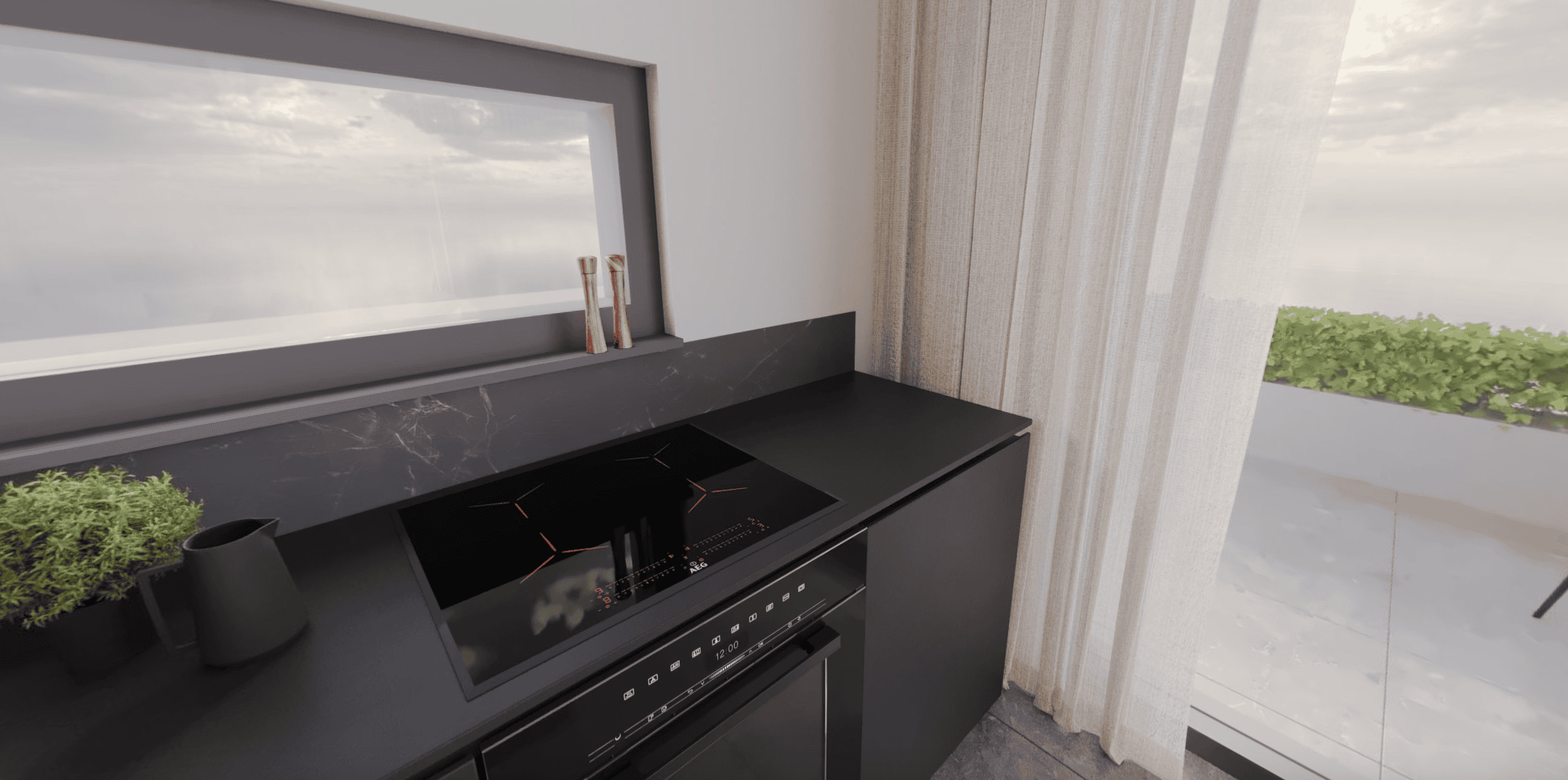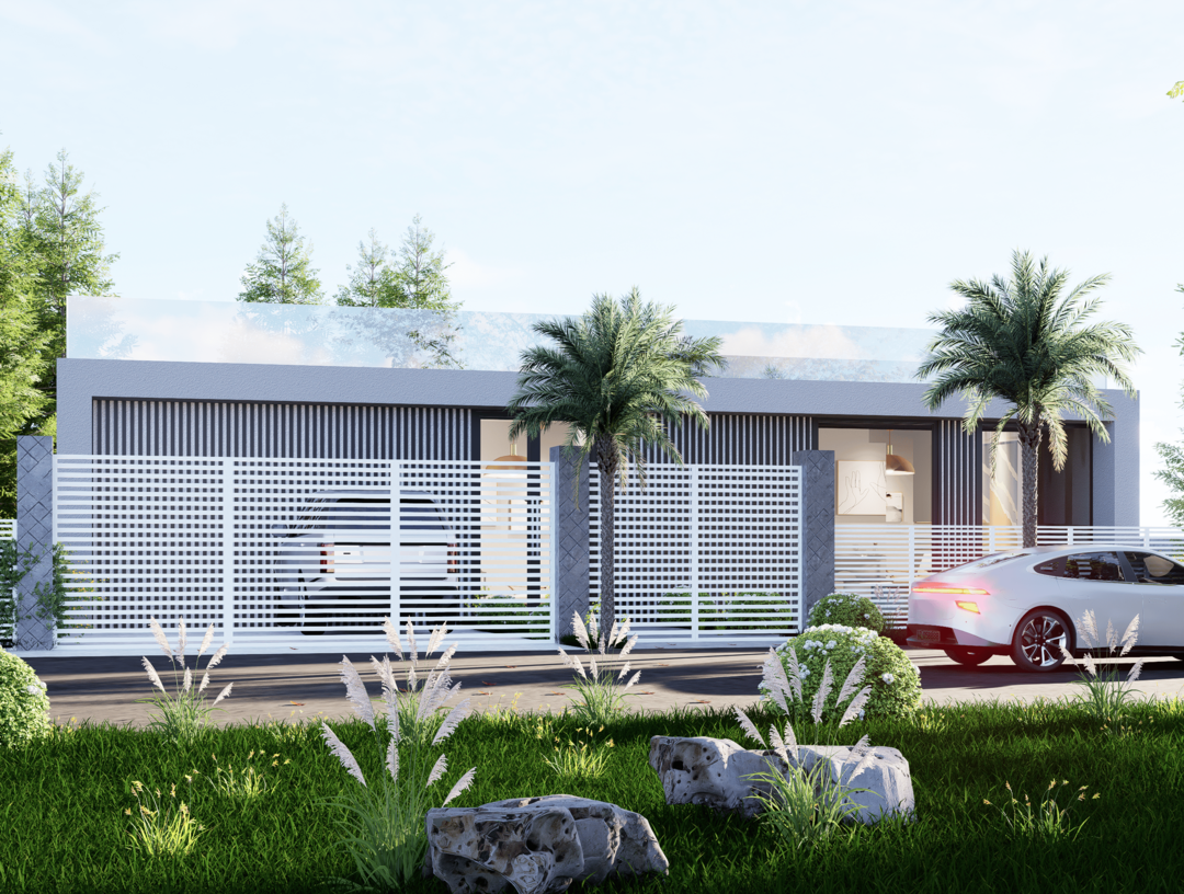 Villa Kube is a single-storey modern home featuring a clean cubic geometry and functional layout. Designed for efficiency and comfort, it offers bright, connected living spaces that open directly onto the terrace and swimming pool area. The design emphasizes natural light, privacy, and indoor-outdoor living.